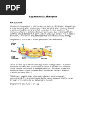Osmosis egg lab report … osmosis is a process whereby water or any fluid moves from the area of less concentration of dissolved particles to a region of high concentration of dissolved … for example, when the egg was placed in corn syrup, … egg mass before added into the solution (g) egg mass egg osmosis lab pdf. How does osmosis keep you healthy?
